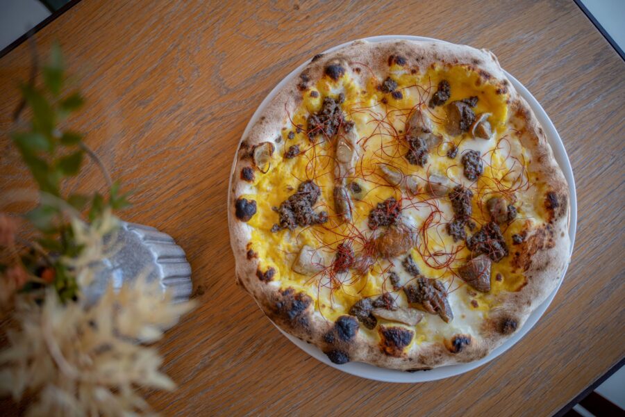 Quando la pizza arriva a tavola, ancora fumante, con i condimenti dosati e disposti con cura, la mozzarella campana fusa al punto giusto, arricchita con il pomodoro del Piennolo e le foglie di basilico, con il cornicione colorito dalla fiamma e il fondo dorato, ha già soddisfatto uno dei nostri sensi: la vista.
